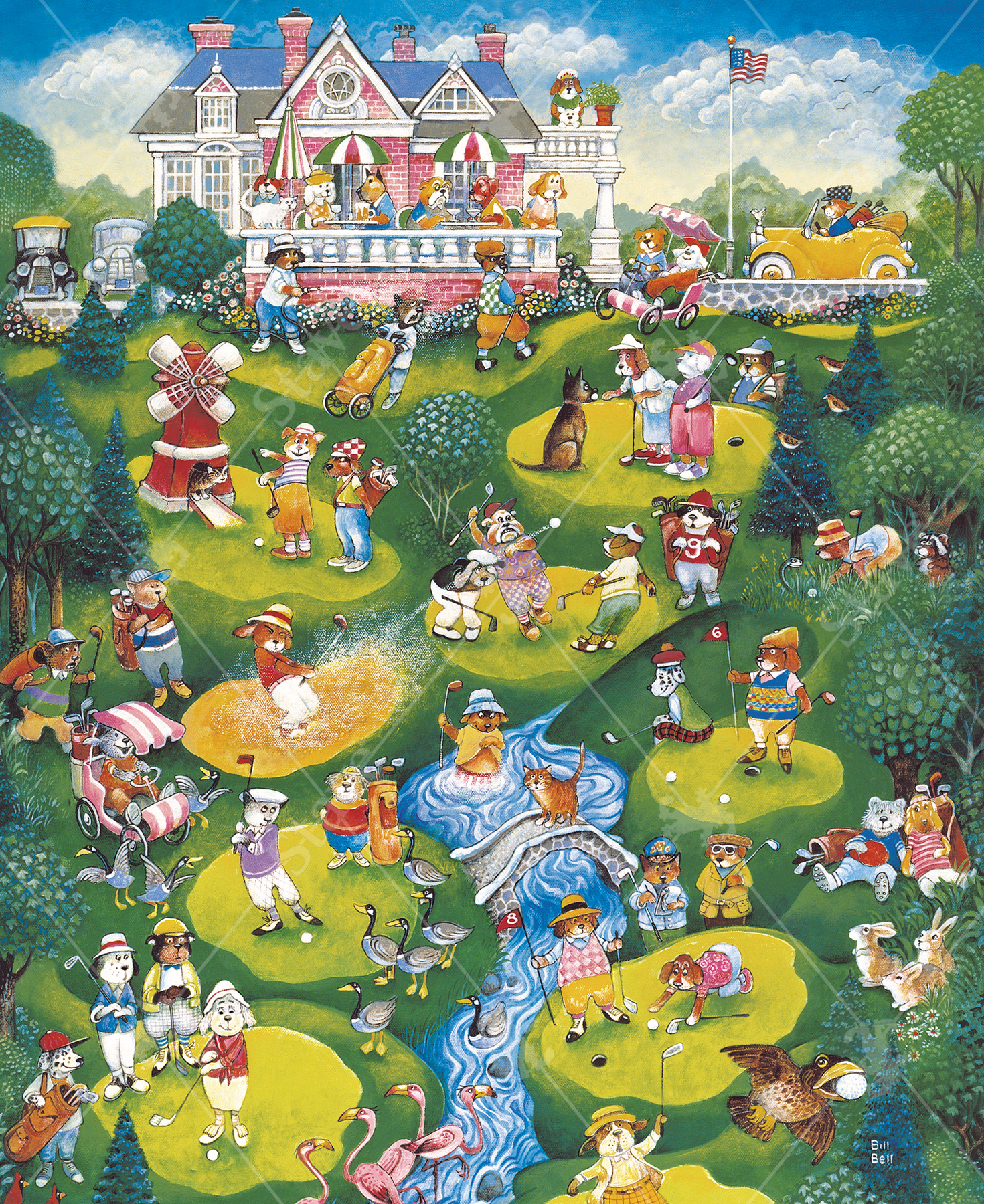 Fore… Play! Dive into this wooden jigsaw puzzle that’s a hole-in-one for fun! Step onto the green, and you’ll be amazed by pooches perfecting their golf swings across nine putting greens. Each hole is a new adventure with quirky challenges that’ll have you laughing and strategizing as you navigate their canine course. Grab your friends, and get ready for a pup-tastic game of golf that’s sure to drive you wild!
