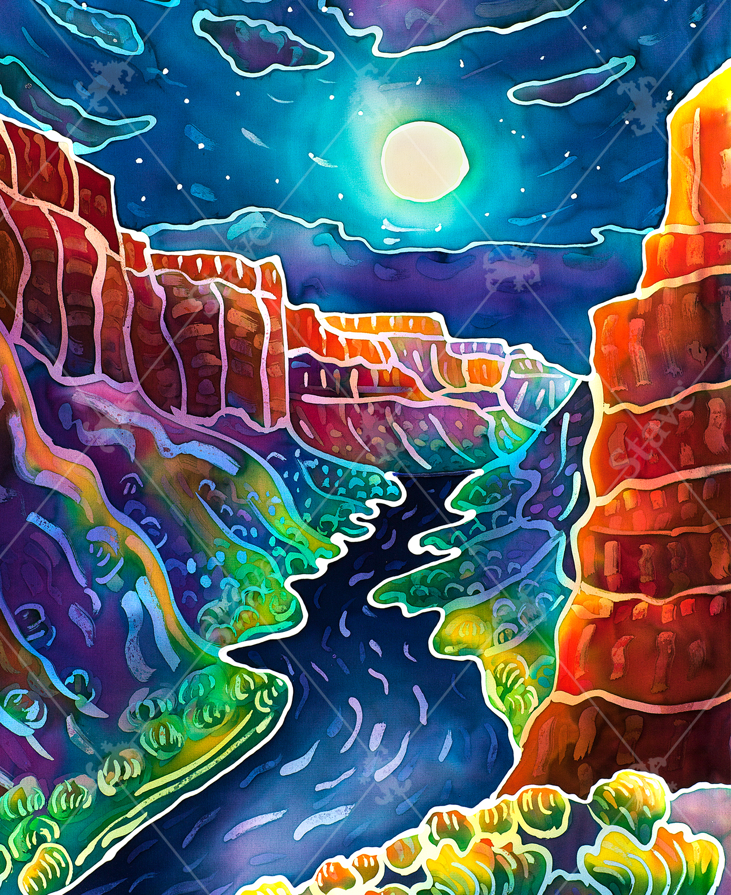 Step into the hush of night, where the canyon glows under silvery moonlight, and the world feels wonderfully still. Towering rock formations rise like ancient storytellers, while a ribbon of river winds through the canyon, catching the light in flickering reflections. Along its banks, touches of greenery thrive in the peaceful moonlight. With each piece you place, this magical, dreamlike scene unfolds slowly—like a story meant to be savored.