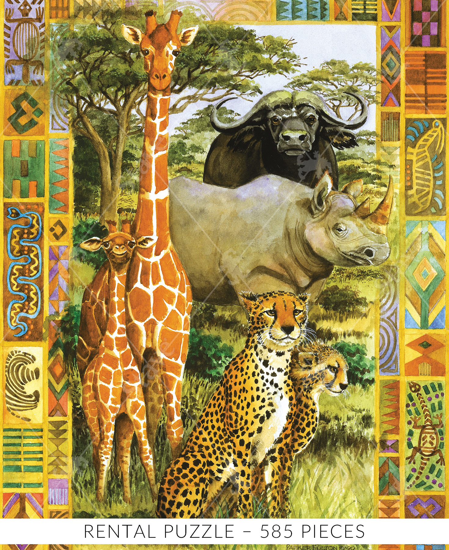 Bring the wild wonders of the savannah to life with the African Plains Wooden Jigsaw Puzzle! Assemble this lively tableau filled with iconic animals—swift cheetahs and elegant giraffes, a strong rhino, and an inquisitive water buffalo exploring its surroundings. This unfolds against the stunning backdrop of the African plains, beautifully encased in vibrant African patterns. Perfect for puzzle enthusiasts and wildlife lovers alike!