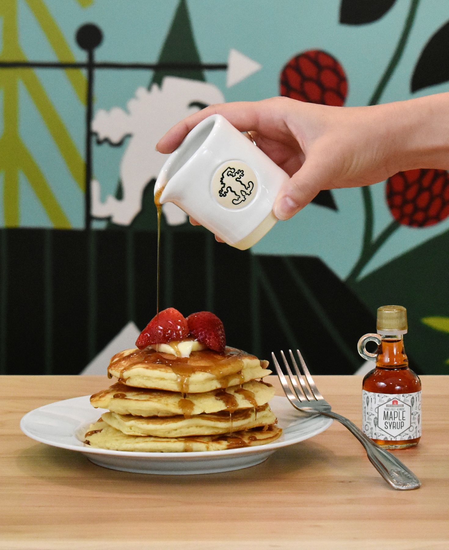 Breakfast time just got a little sweeter! Enjoy the pour from this petite stoneware pitcher holding 3 to 4 oz. of maple syrup (liquid gold as we Vermonters call it), your favorite dressing, or cream for your tea or coffee. You can safely warm its contents in the microwave. Included with your handmade pitcher is a 40mL nip of the sweet stuff harvested from Bunker Farm in Dummerston, Vermont.